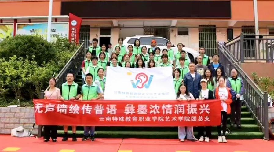 2025年7月,在艺术学院党支部引领和“残健融合,艺路同行”辅导员工作室教师指导下,29名残健学生组成的“无声墙绘志愿服务队”前往云南省禄劝彝族苗族自治县发明村及县特殊教育学校,开展了为期五天的推普社会实践活动。团队以“残健携手”为特色,采取“推普+手语+墙绘”多元方式,精准回应边疆民族地区实际需求,有效探索了“文化共融—民族团结—乡村振兴”协同发展的实践路径。