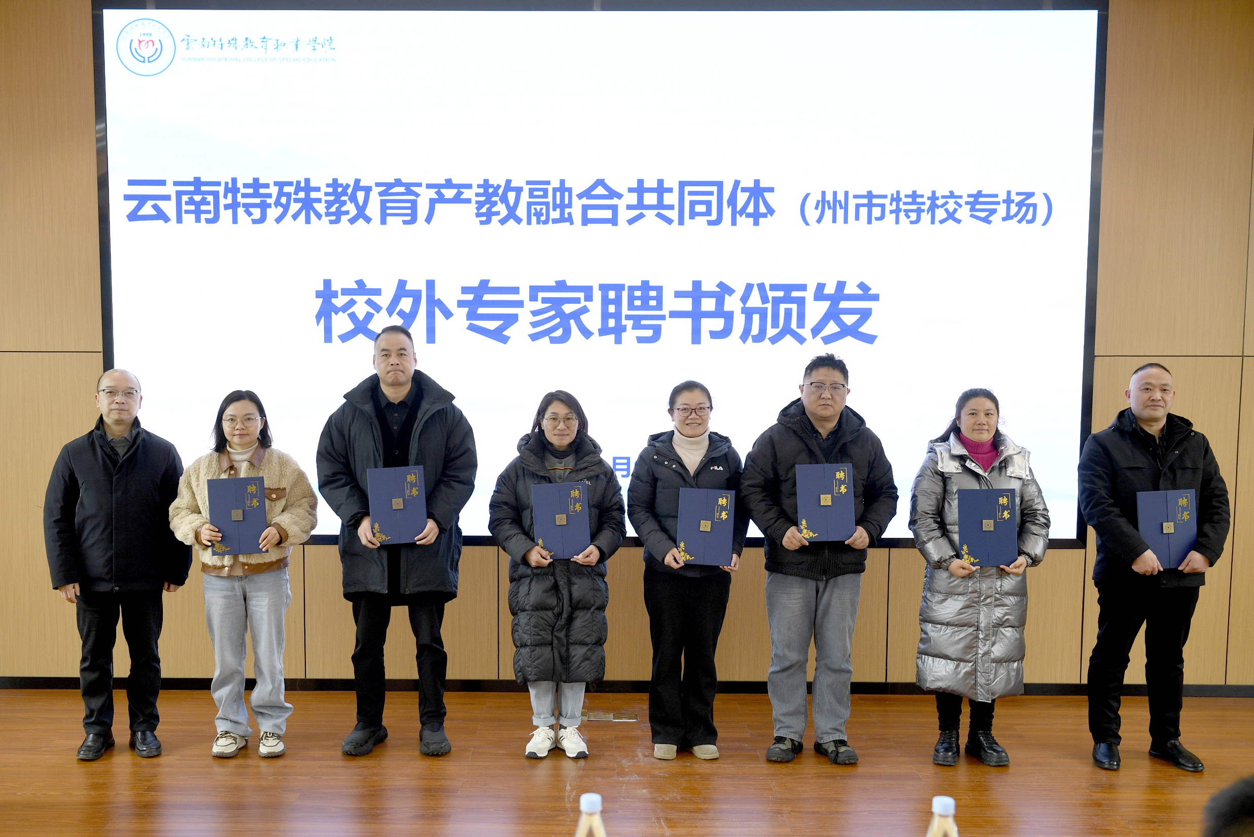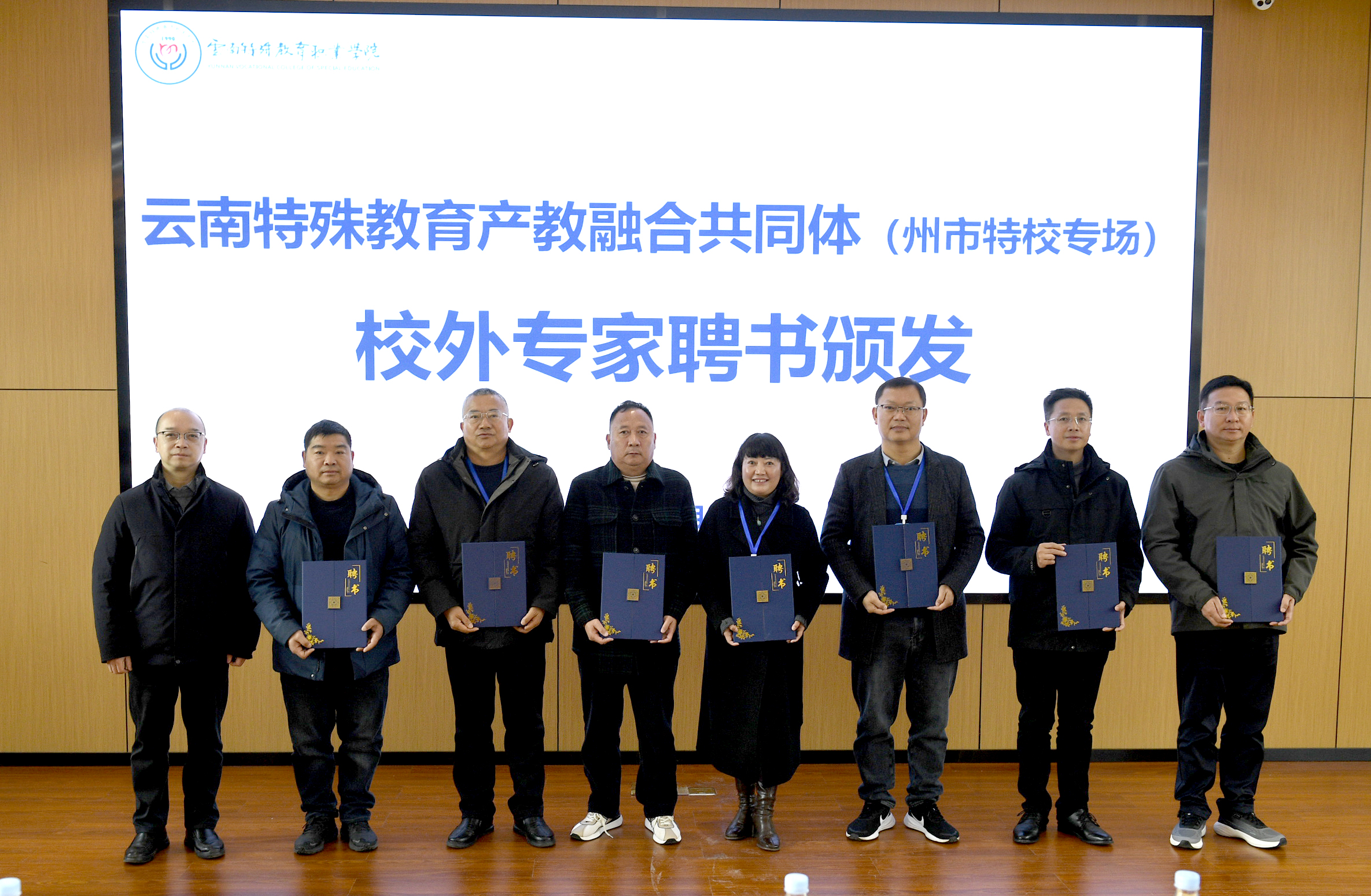 会议期间举行了校外专家聘任仪式,来自曲靖、昆明、普洱、大理、迪庆等地州市特殊教育学校的多位负责人受聘为校外专家。通过专家聘任,进一步充实该校在专业建设、教学改革、科研与管理等方面的智力支持,为共同体协同育人提供有力保障。