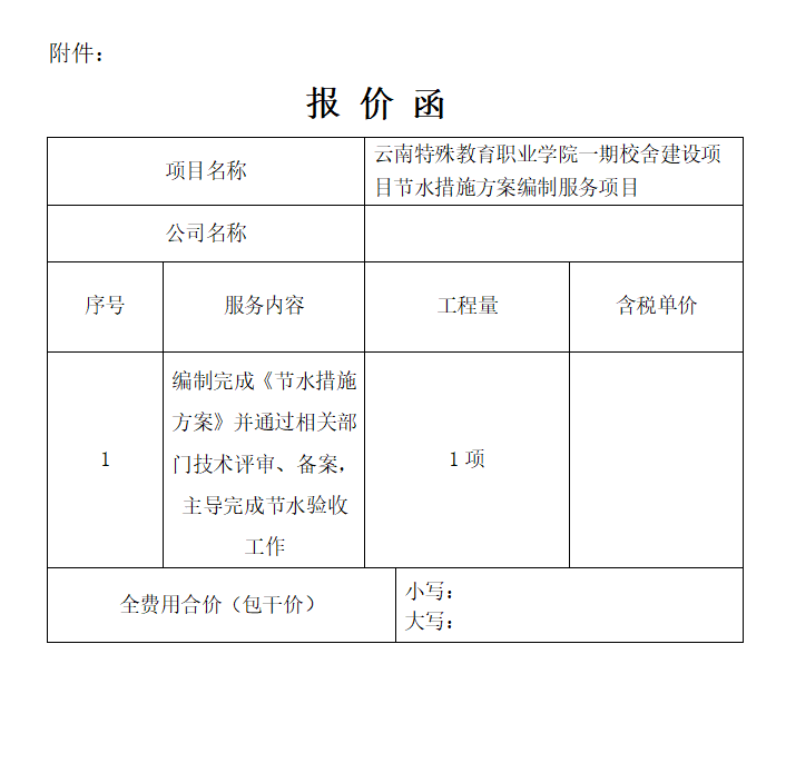 2、本项目不设预付款,项目完成(取得建设项目节约用水措施方案审查意见)后,一次性支付合同款项。