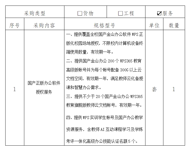 1、项目名称:金山办公WPS国产办公软件正版化授权服务项目