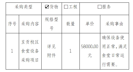 1、项目名称:呈贡校区食堂设备采购项目