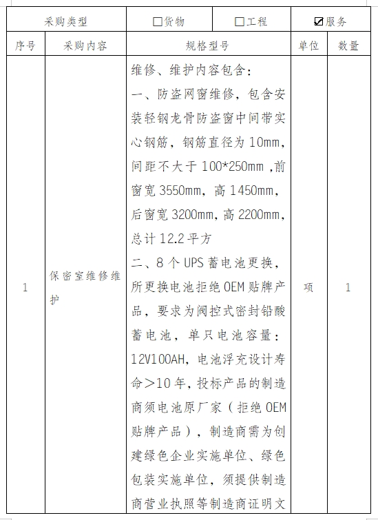 1、项目名称:保密室维修维护