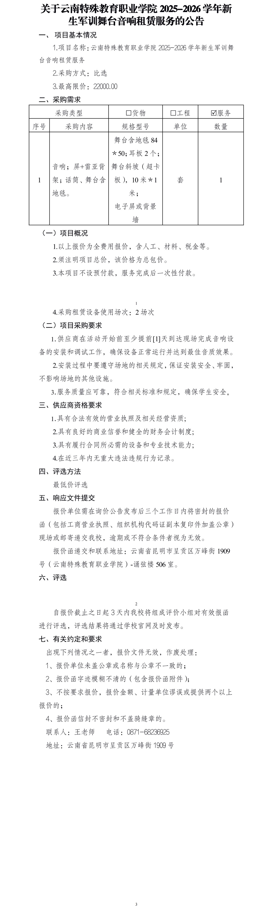 关于TapTap点点2025-2026学年新生军训舞台音响租赁服务的公告