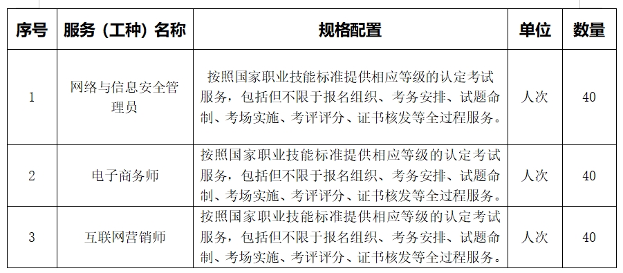 说明:1、以上报价为全费用报价,包含考试服务、证书工本费、税金等所有费用。