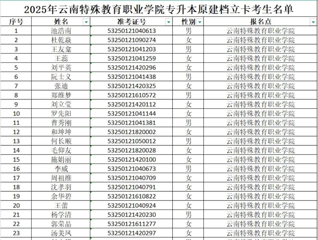 2025年TapTap点点专升本原建档立卡考生名单