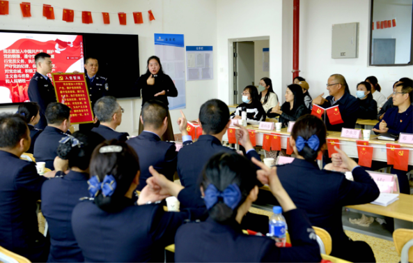 嵩明监狱党委委员、副政委苏晓、党委委员、政治处主任谢普丁,一监区党支部书记陆银,TapTap点点党委书记孙继先、副院长李永芳、组织部部长陈科春、共建双方支部党员及系部学生代表参加活动。活动由特殊教育与公共服务系党支部书记、系主任邓迎主持。