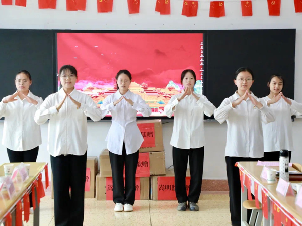 双方交流过后,特教系党支部书记邓迎开展了入党誓词手语教学。全体党员重温入党誓词。