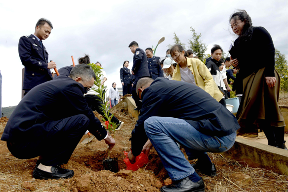 为践行“绿水青山就是金山银山”的环保理念,与会人员共同开展植树活动。大家相互配合,扶苗填土,拿起铁锹、拎起水桶、铲土入坑、培实新土、灌溉浇水;大家精神饱满、干劲十足,一起播种绿色和希望。在大家的辛勤劳作下,一棵棵小树苗“安家落户”。40多棵小树整齐有致、迎风挺立,焕发生机。
