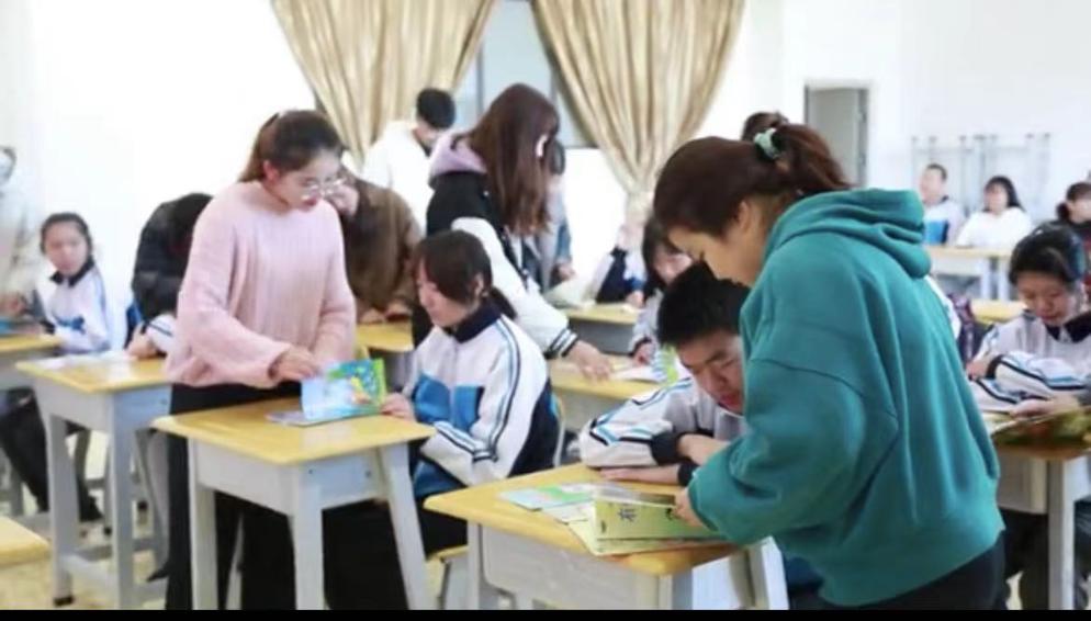 “学海无涯 开卷有益”点点官网大学生生活助教老师带领培智班的同学们进行了绘本阅读活动。助教老师活泼愉快的情绪、灵活自然的手势、抑扬顿挫的语调,将学生的兴趣在短短几分钟内充分调动起来,大家热情洋溢,积极互动,表现出对阅读的渴望、对生活的热爱。助教老师向孩子们介绍了不同的绘本故事,分享了一些阅读方法,还展示了立体绘本,并且现场分发绘本,和孩子们一起阅读。
