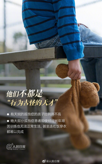 一项调查显示,我国学龄期儿童孤独症患病率达千分之七。你知道吗?孤独症患者不等于行为古怪的天才。