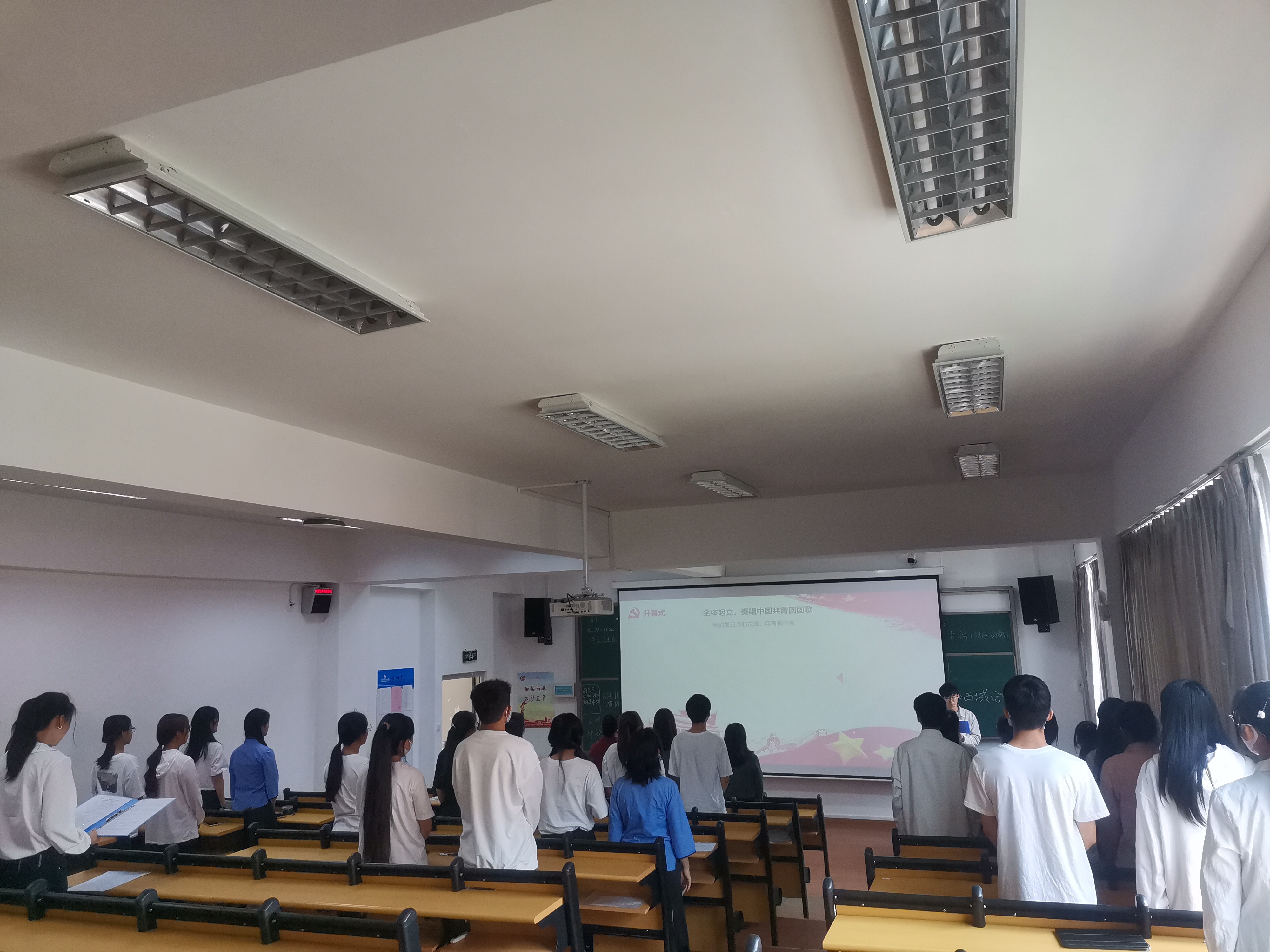 在会议正式开始之前全体参会人员奏唱中国共青团团歌。