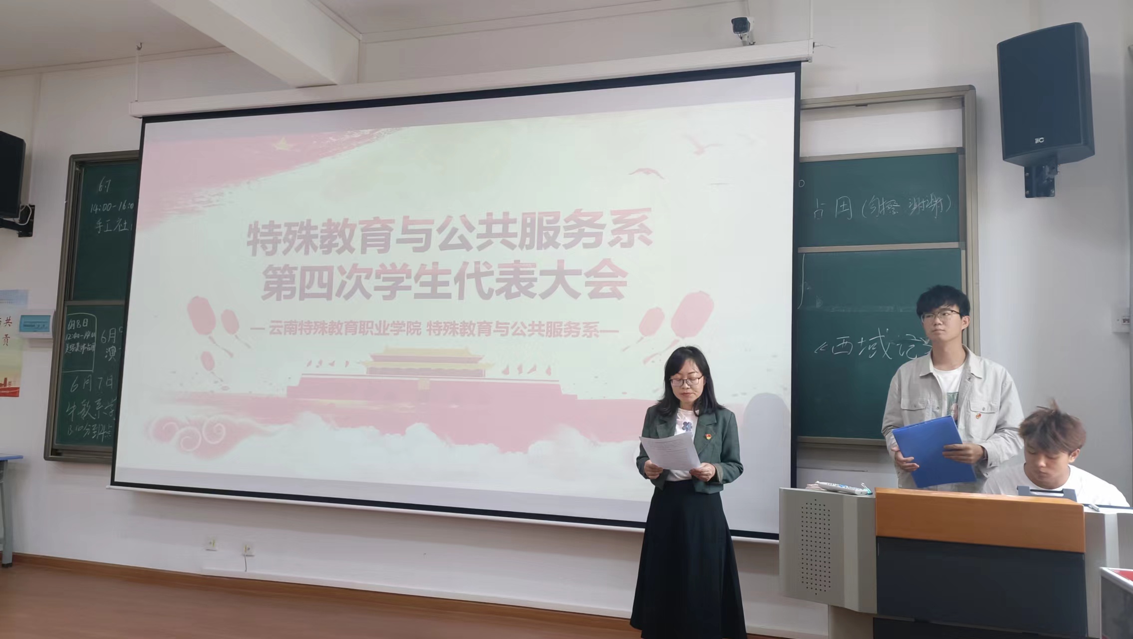 最后大会选举出系部学生会委员会委员:T21康复三班李丹、T21特教三班董秘、T22特教三班高雲汇。第四届学生会主席团成员:T22家政二班周乾美、T22康复二班何懿娟、T22家政二班周继蕊。
