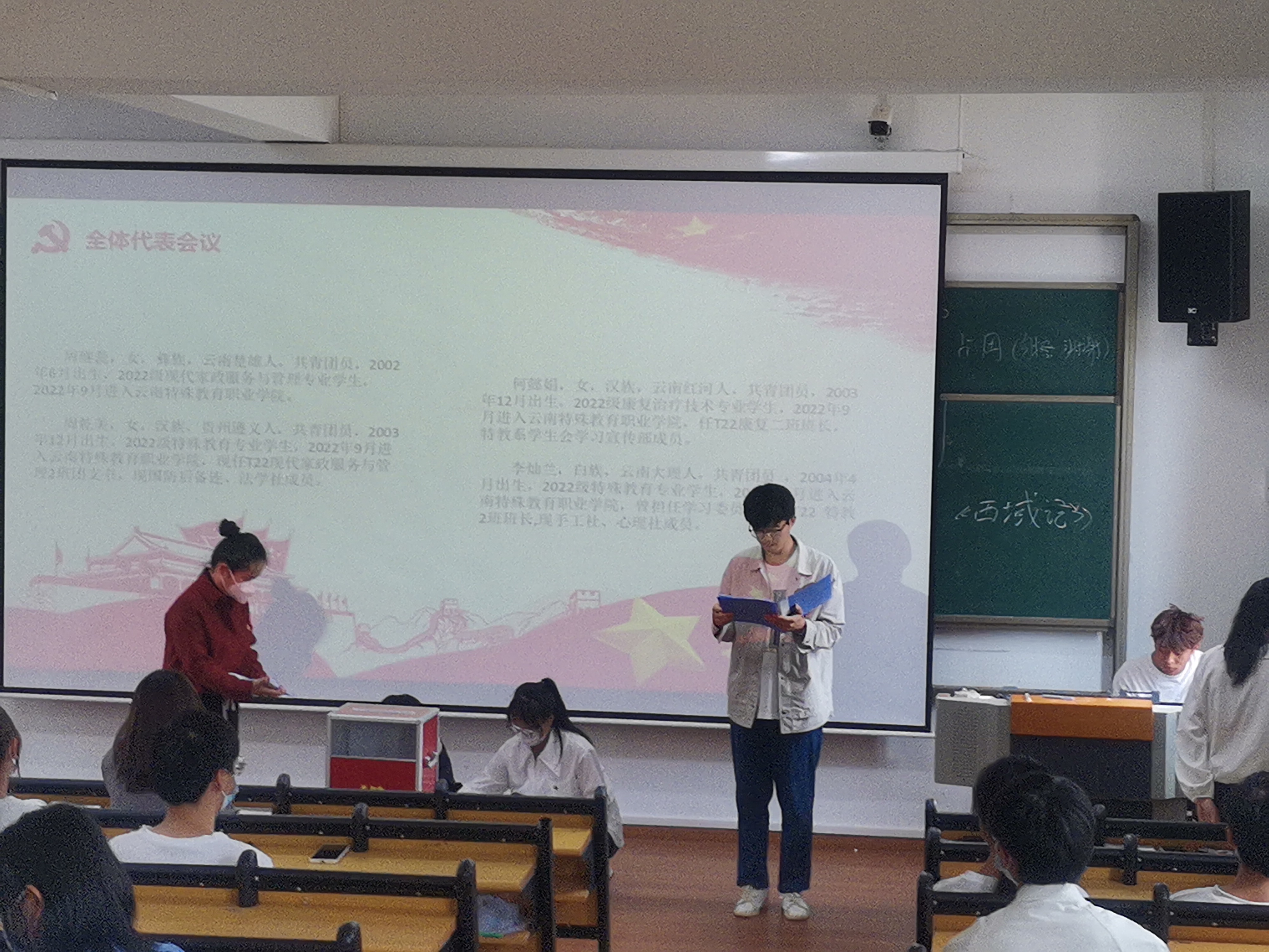 随后,由主持人宣读、与会代表听取第三次学生代表大会总监票人、监票人、计票人、唱票人建议名单。