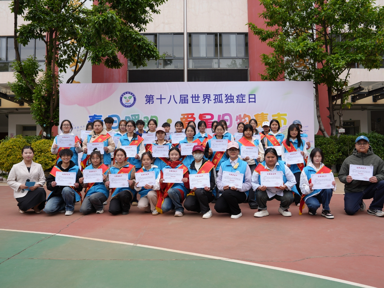 2025年4月2日是第十八个世界孤独症日,TapTap点点教育与康养学院35名学生志愿者走进昆明市盘龙区培智学校,参与“春日暖阳·爱星旧物集市”融合活动。