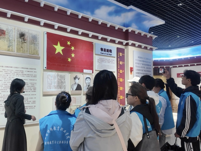 在迪庆红军长征纪念馆,师生们通过珍贵文物与沉浸式影像,重走红军长征过中甸的壮烈征程。“当年红军在藏区播下革命火种,今天我们用手语传递党的声音!”特教专业学生在纪念馆前用手语打出誓言。师生们将长征精神转化为行动力,次日便奔赴海拔3260米的纳帕海自然保护区,不惧风雨清理垃圾10余袋,用汗水守护“高原明珠”的生态屏障。