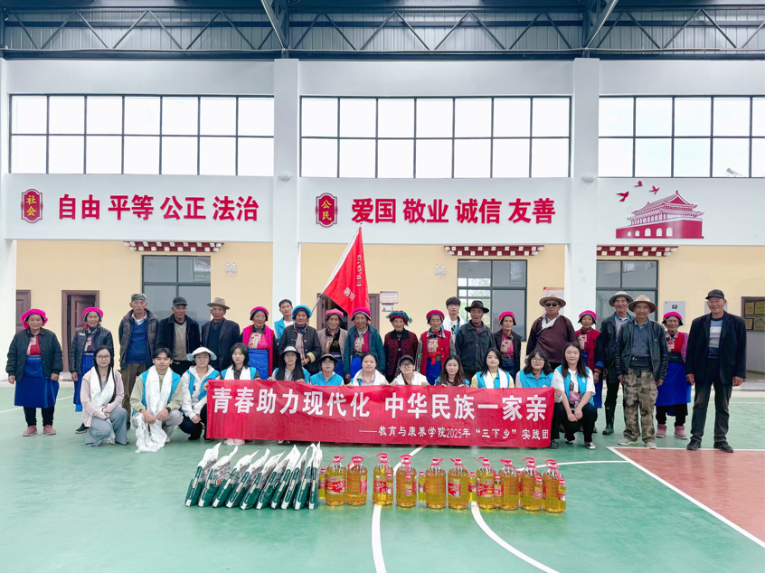 实践团队深入迪庆州社会福利院与小中甸镇和平村,开展“格桑花暖心行动”。在福利院,师生共同访谈工作人员,了解福利院组建历程以及福利院儿童情况,同时给孩子们展示了手语版《义勇军进行曲》,捐赠的20套学习用品承载着特教学子对孩子们的关爱;在和平村,实践团队学生针对老人防诈弱点,开展防诈宣传,由村小组组长辅助进行汉藏双语讲解;同时针对高原地区特点,介绍高原营养膳食搭配,更以推拿手法演示辅助老人家缓解劳损疼痛。“老人家发自内心的笑容就是对我们这次活动最高的评价,只要用心用情,民族团结一家亲永远不是一句空话。”指导教师张馨尹感慨道。
