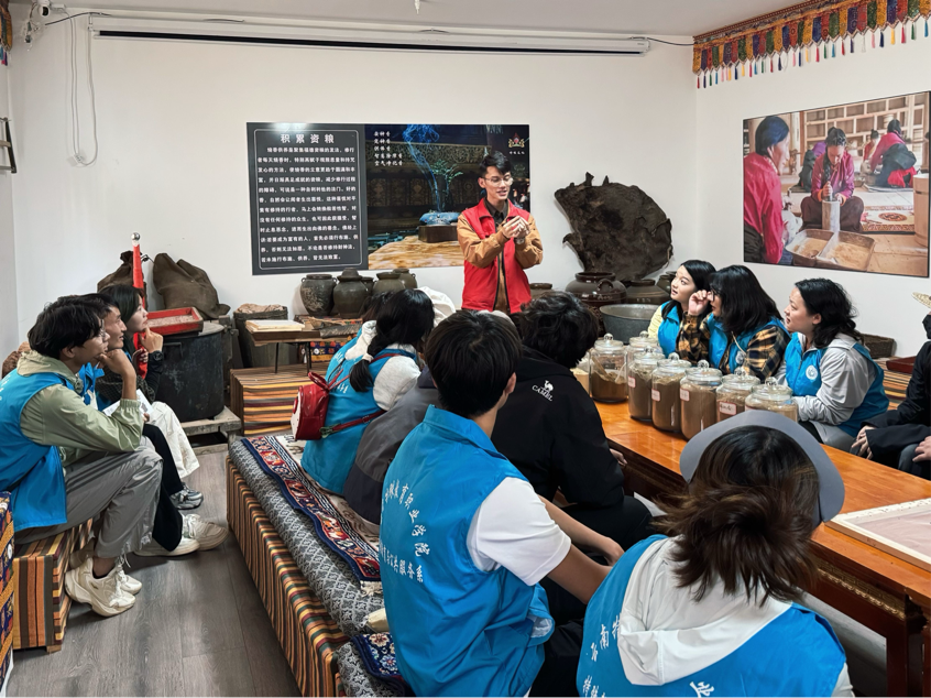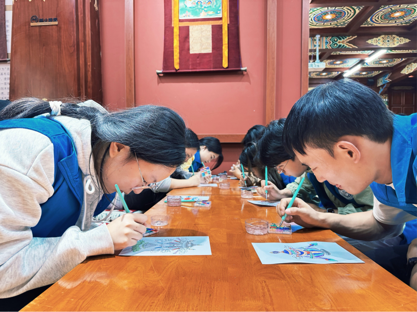 走进迪庆州博物馆与古城非遗体验中心,唐卡的绚丽色彩、藏香的氤氲药香让师生沉醉。在非遗传承人指导下,实践团队师生亲手参与藏香制作,体验手绘唐卡纹样。“每一笔金线都象征民族团结的金纽带”,实践团队成员在唐卡上绘出石榴图案。