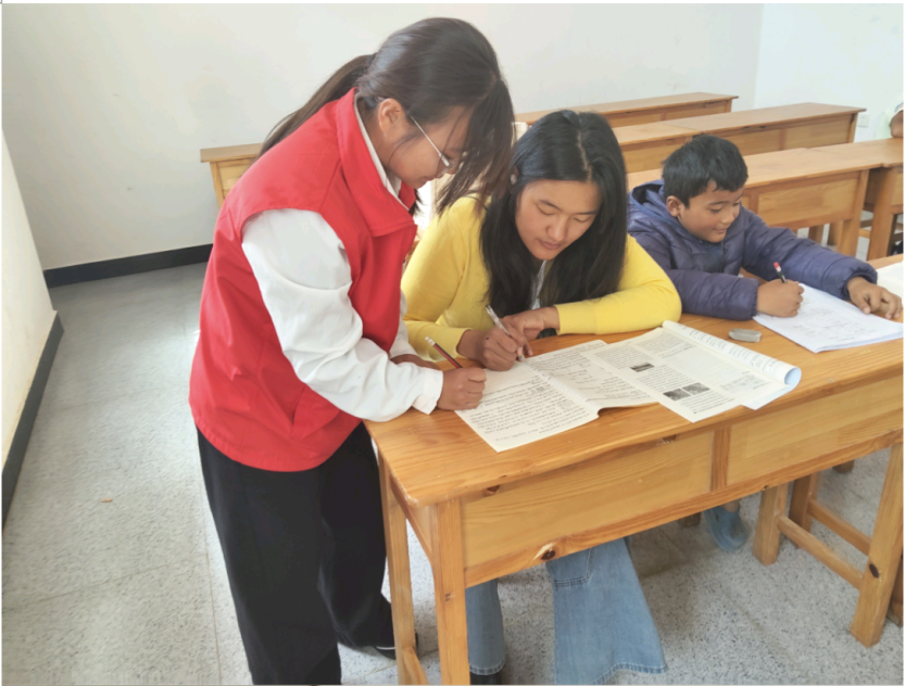 图为李桂云同学辅导作业