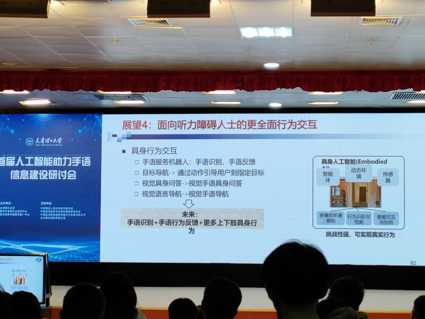 会议由天津理工大学聋人工学院院长 王春东主持,首先播放天津理工大学聋人工学院宣传片。随后与会领导和专家们围绕数字人及交互技术在手语信息化方面的应用这一主题,就数字人建模及绘制、数字人手语生成技术、手语识别和翻译技术、无障碍产品研发等方面汇报最新的进展。同时,对目前通用手语信息技术应用推广的痛点难点展开研讨,为完善下一步智能手语翻译、应用场景的丰富和开展跨学科研究建言献策,希望进一步推动人工智能技术在听障人群教育、公共服务、娱乐社交等领域的应用,帮助听障人群融入主流社会,充分展现政府、社会对听障人群的关注和关爱。