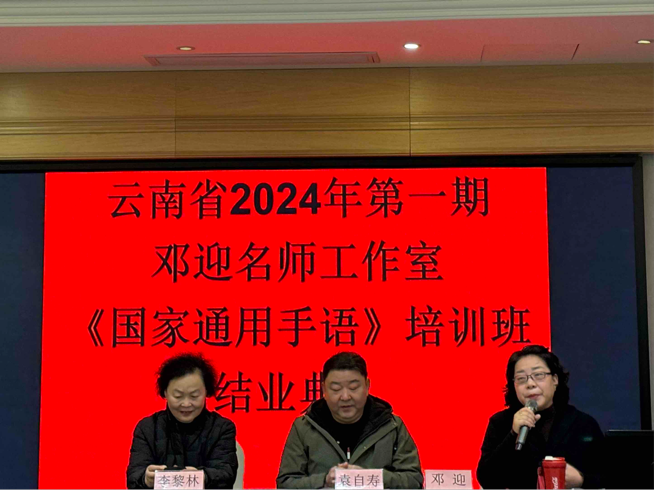 在学校领导和相关部门的大力支持下,云南省2024年第一期国家通用手语培训班于1月25日正式开班。本次国家通用手语培训班共有来自云南各州市的31名学员报名参与,经过10天的培训学习,31名学员于2月4日迎来了结业典礼与鉴定考试。