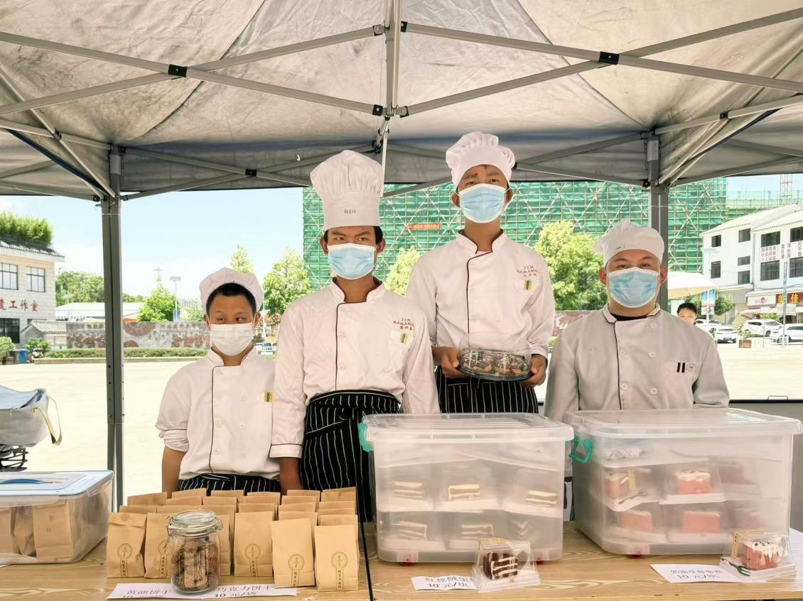 活动中,特殊教育专业的两名助教与西餐烹饪专业的学生一同精心烘焙糕点。助教们还带领培智学生参与集章游园活动,让他们在活动中感受乐趣,同时也将这份快乐传递给现场的每一位参与者。