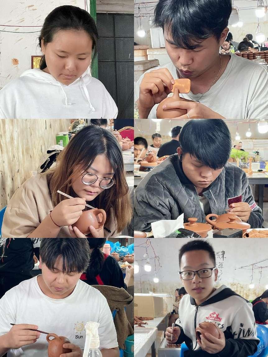 现有11名学生留在企业就业,有9名学生担任公司管理,有2名学生从事淘宝直播,1名学生担任厂长。工厂的学生能熟练掌握紫砂壶的修坯、粘嘴、粘把、填泥、打理、搓嘴、线雕、浮雕、满雕、堆雕等工作;门店的学生能熟练完成线上线下销售,多名学生在协助公司实现月生产1万把壶的过程中发挥了重要作用,企业领导表示学生能将自己的专业技能、敏锐思维、实干精神落地到实际生产中,助力公司发展是一件难能可贵的事,工厂方表示,后续将加大与学院校企合作力度,实现再接收、再培养,形成“双赢共享”的合作模式。
