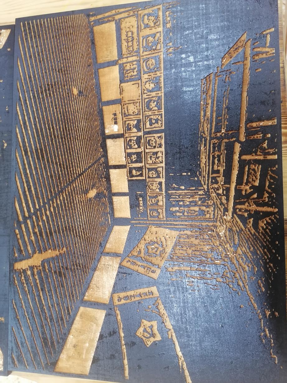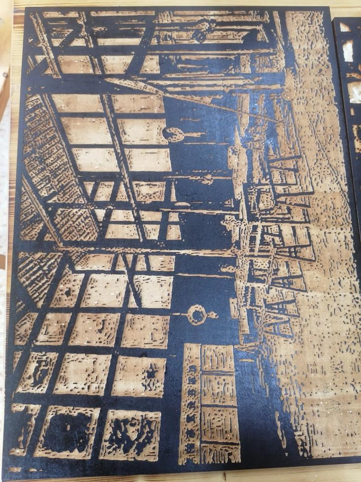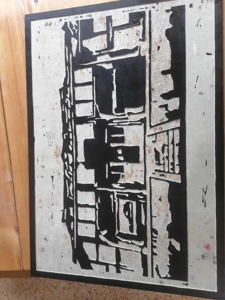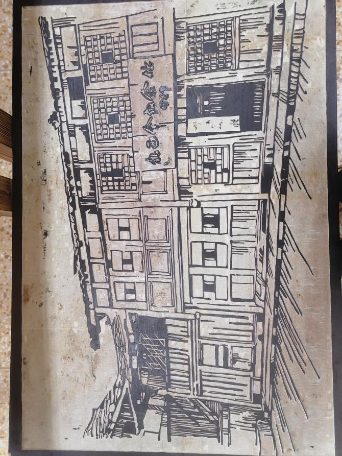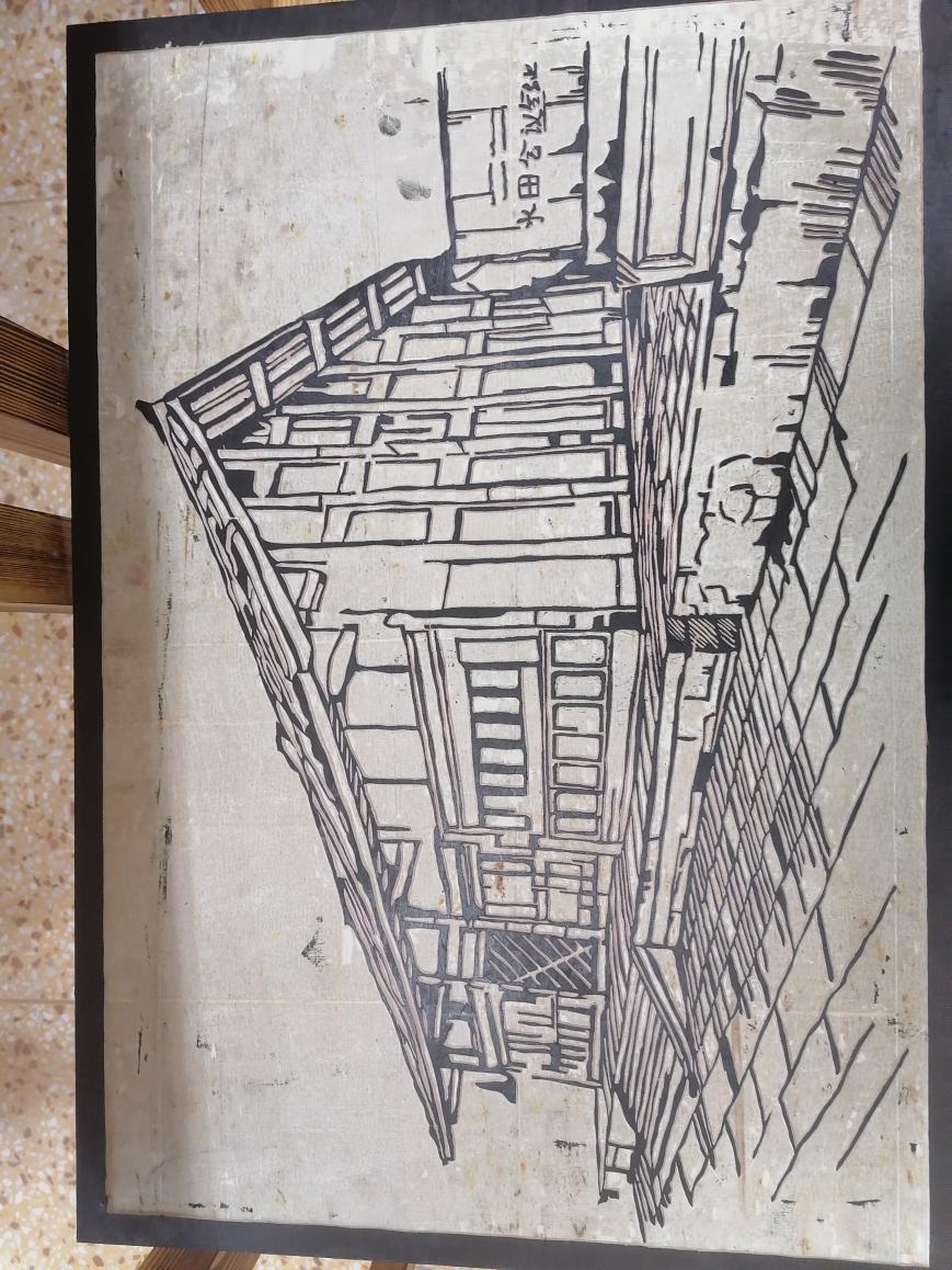 木刻是结合木刻版画有的特点刻出反向图形,再印在纸上欣赏的一-种艺术。作品以红军长征旧址扎西会议旧址为设计主题,通过用不一-样的技法设计理念来突出长征旧址,既能提现我对故乡长征精神的敬仰,还能使传统工艺得到发扬。