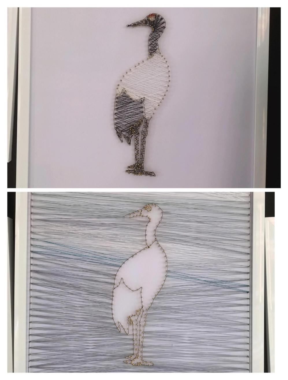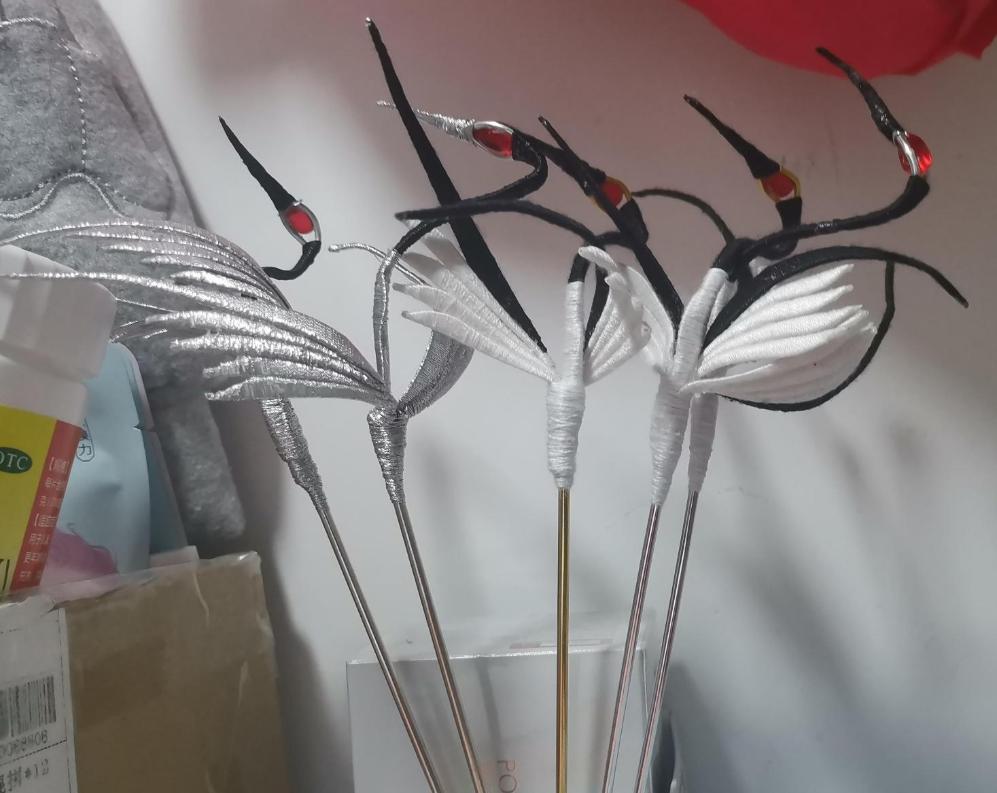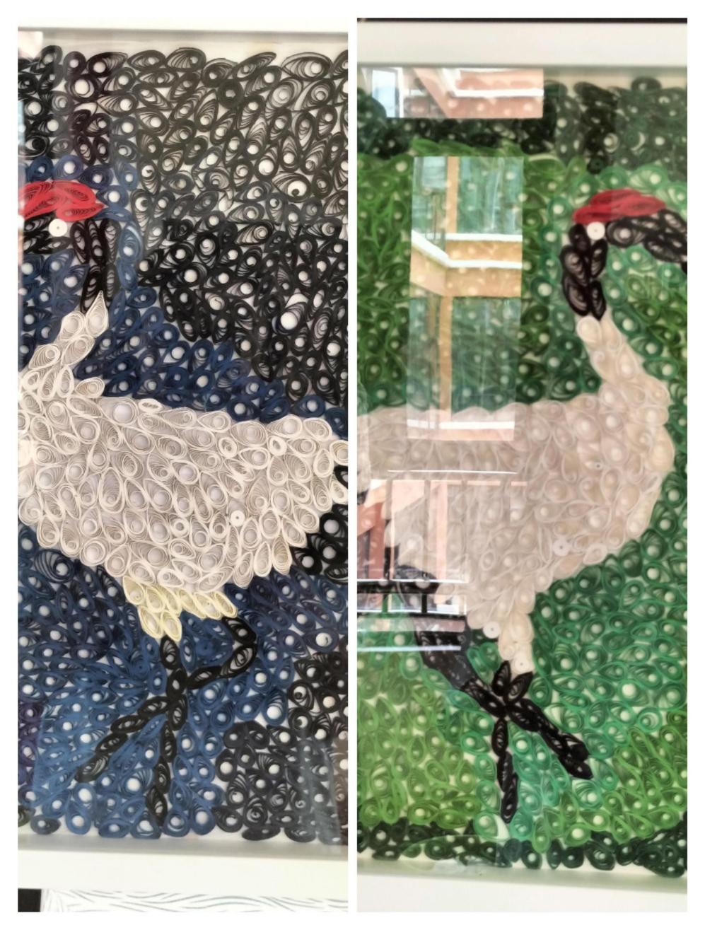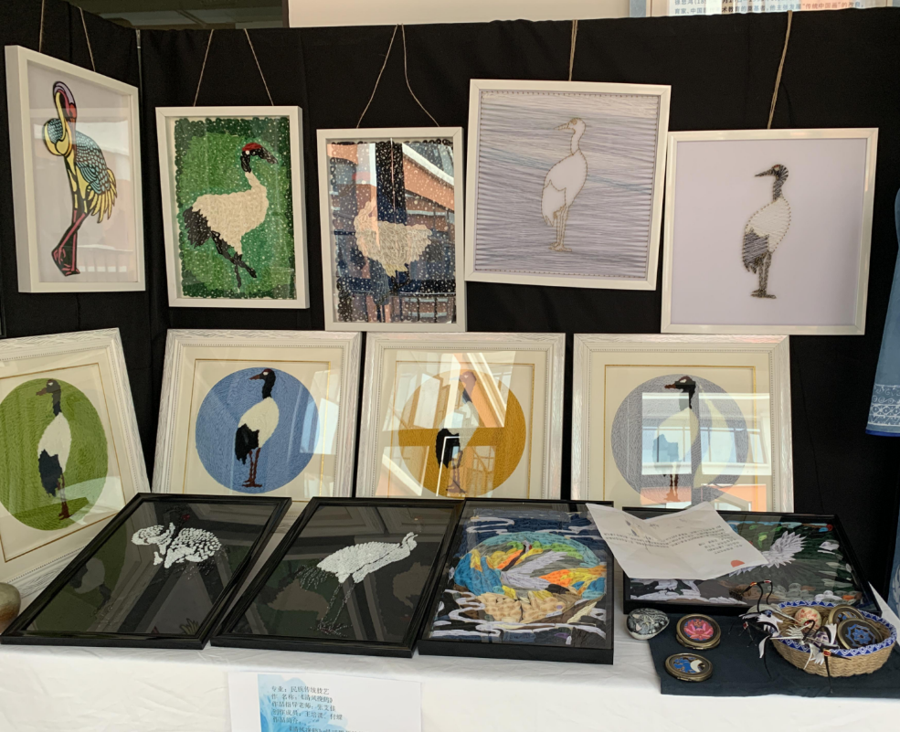 《清风挽鹤》是通过剪纸和编织制作出黑颈鹤形象的装饰品。人类活动破坏了黑颈鹤的栖息地、冬季食物缺少等因素使黑颈鹤成为濒危动物,通过制作《清风挽鹤》是想让更多的人认识它们,了解它们,保护它们。