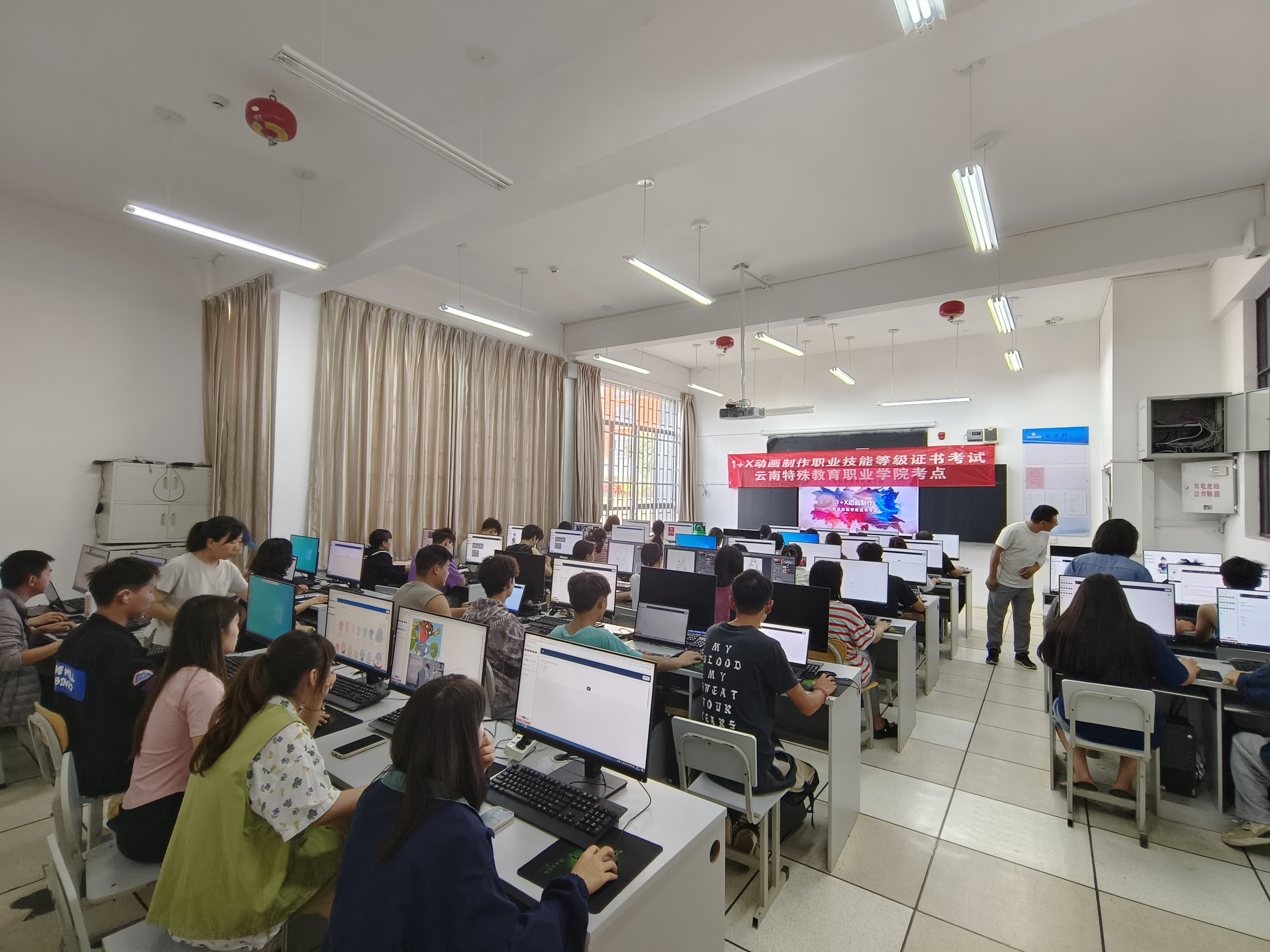 为贯彻《国家职业教育改革实施方案》精神,艺术系积极开展1+X证书试点工作。2023年6月19日艺术设计专业顺利完成1+X动画制作职业技能等级证书(中级)认证考试,54名学生(其中28名听障学生、1名肢障学生)参加了此次考试。