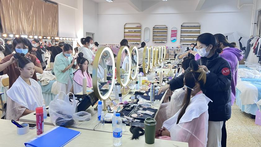 本次考试分理论和实操两部分,设置2个考场,考试合格的学生将获得由北京色彩时代商贸有限公司颁发的人物化妆造型职业技能等级(中级)证书。经过教研室张向阳老师和同学们一个多月的精心准备,本次考试理论与实操成绩优异,通过率达100%。