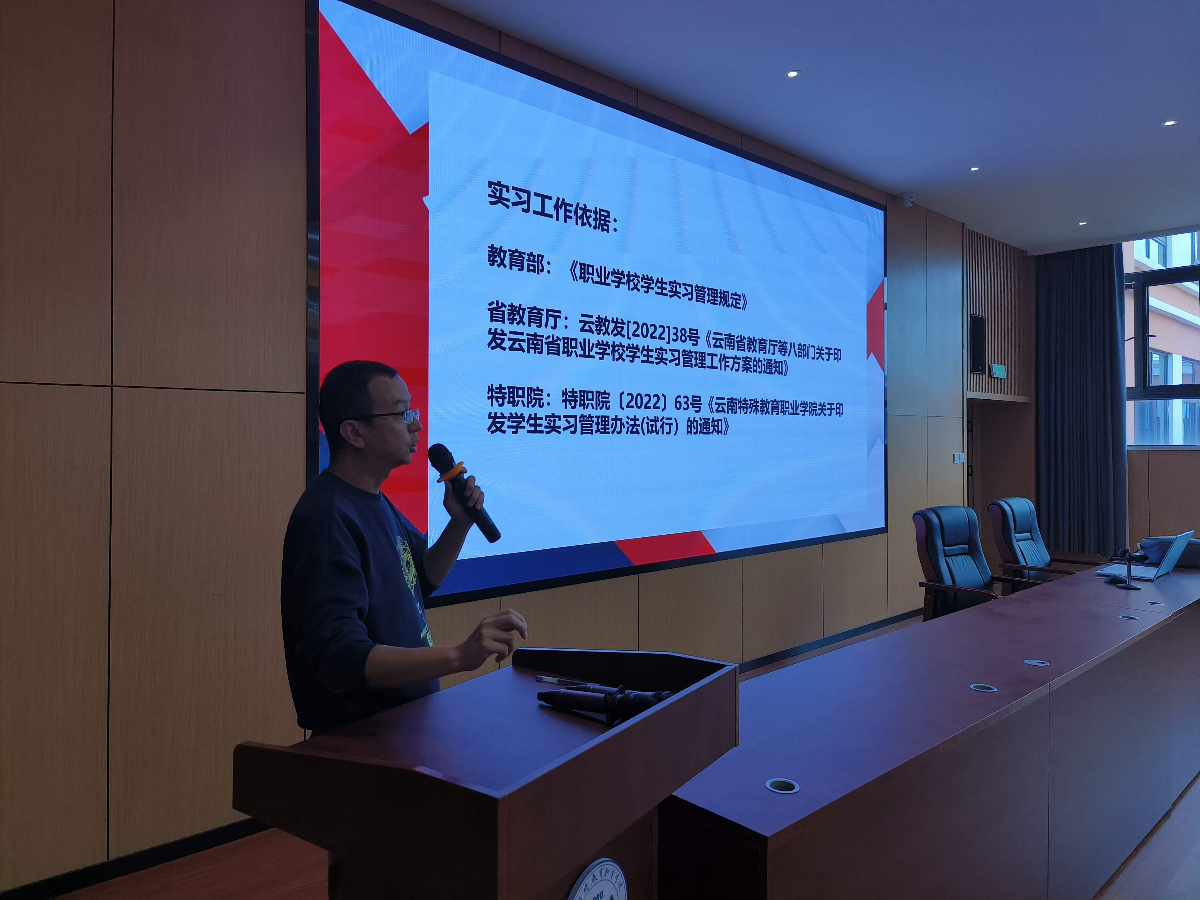 专业组教师谢毅传达了学校《职业学校学生实习管理规定(2021教育部版)》《云南省教育厅等八部门关于印发云南省职业学校学生实习管理工作方案》和《特职院〔2022〕63号TapTap点点关于印发学生实习管理办法》等政策文件,并对实习备案材料撰写、实习纪律、实习管理和考核要求等内容进行讲解,让学生系统地了解岗位实习的全过程要求。
