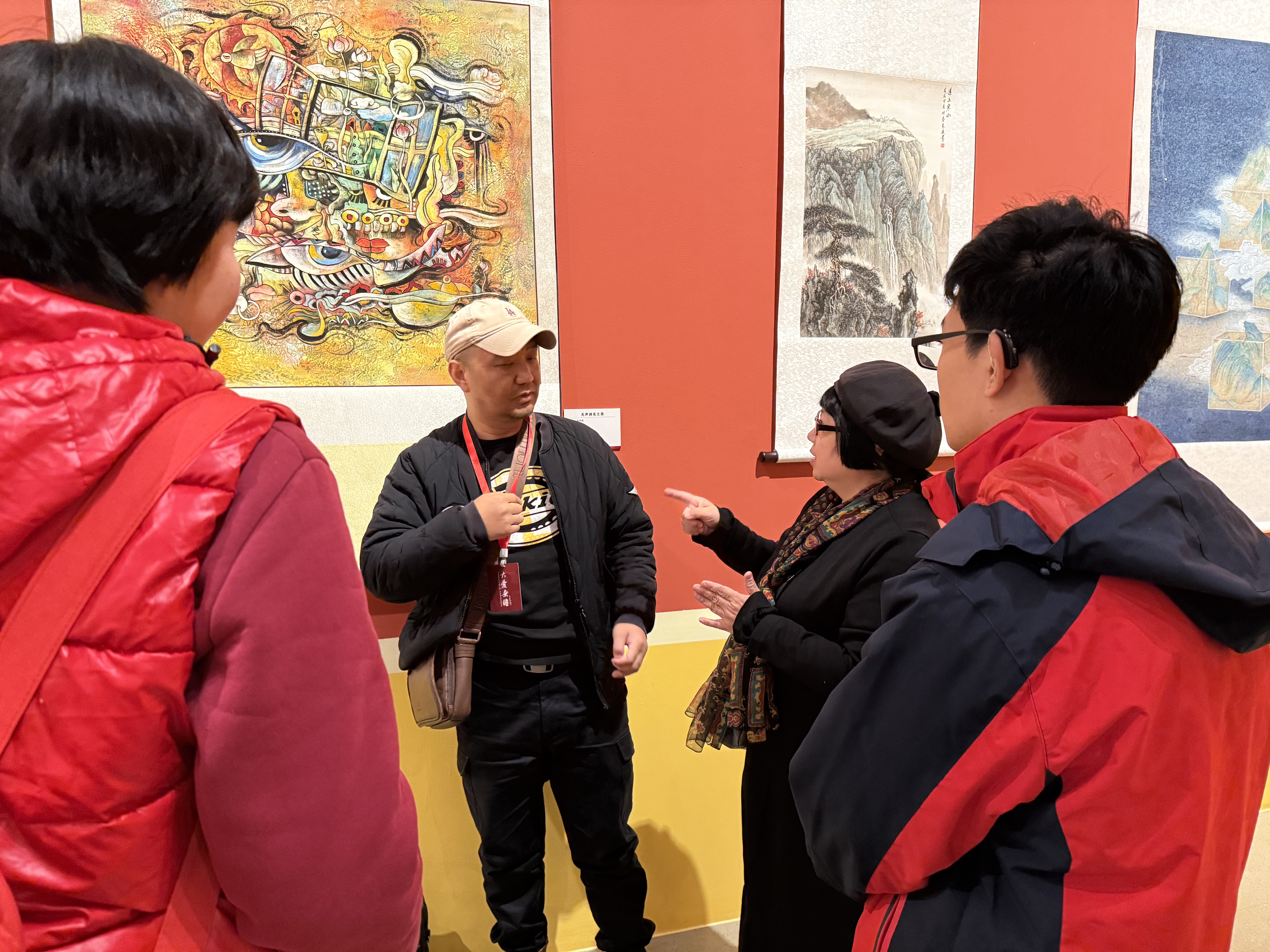 包宇良老师在个人作品处与同仁交流
