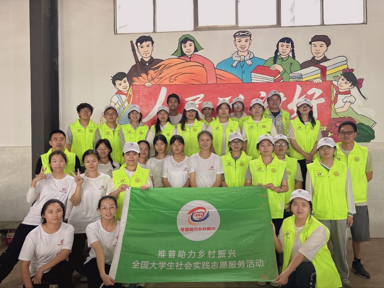 实践团成员在墙绘前合影
